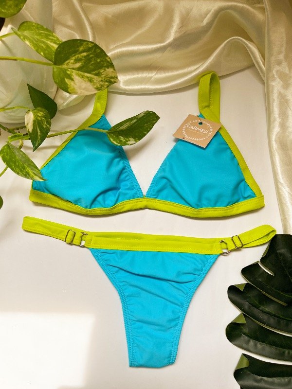Bikini triangulito unido con tasas desmontables y colaless regulable