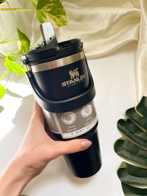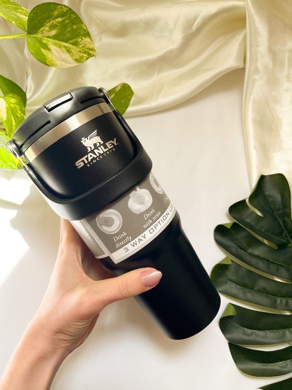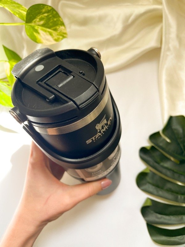 Botella stanley, doble pico. Color negra.